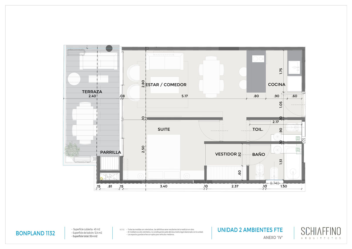 2º | 201 | Frente | 43 m2 | 12,40 m2 | 55,40 m2 | 165.000 | |