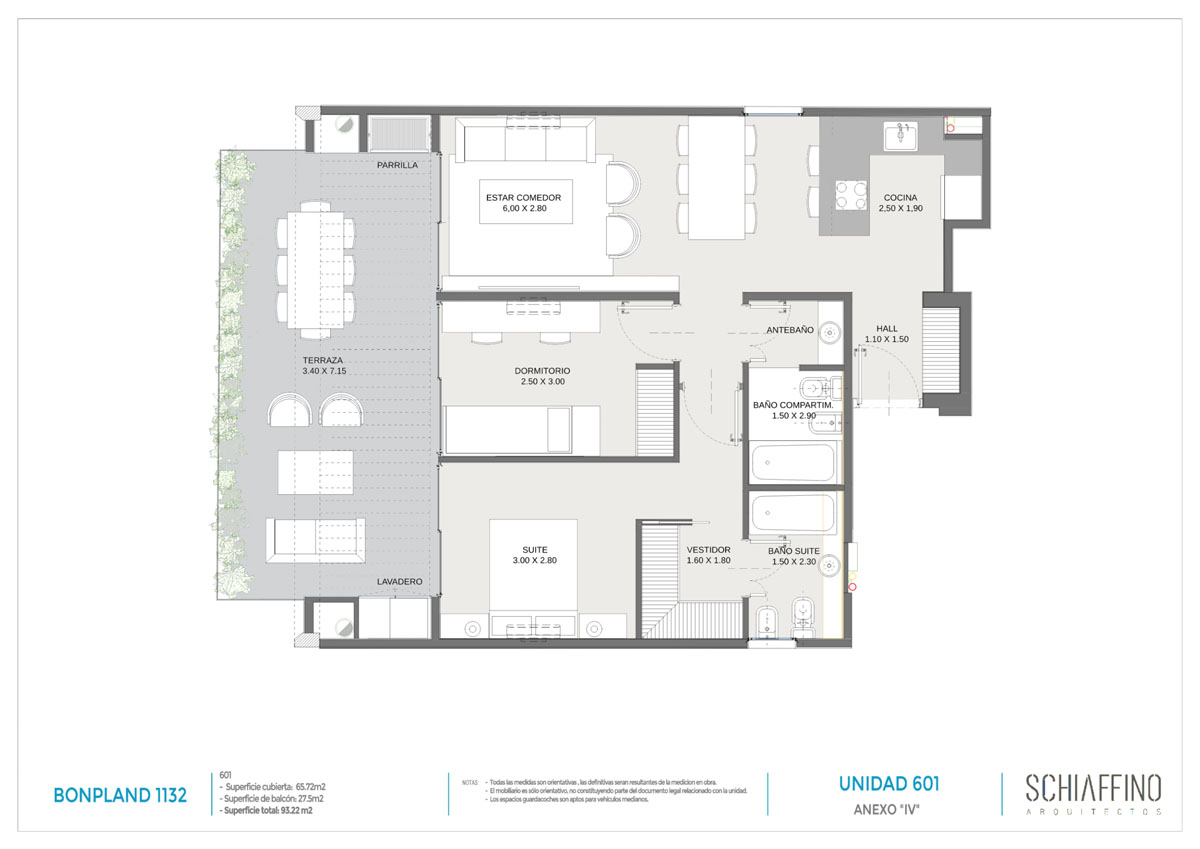 6º | 601 | Frente | 65.72 m2 | 27.50 m2 | 93.22 m2 | 272.800 |